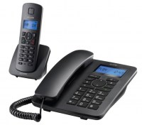 Радиотелефон Alcatel M350 Combo чёрный. Отличительные особенности модели: две трубки в комплекте - проводная и беспроводная, дисплей с крупными символами. Основные характеристики: определитель номера, громкая связь, телефонная книга доступная для всех трубок, 10 полифонических мелодий звонка, блокировка клавиатуры, подсветка дисплеев, повторный набор 10 последних набранных номеров, режим Eco+, конференц-связь и переадресация...
